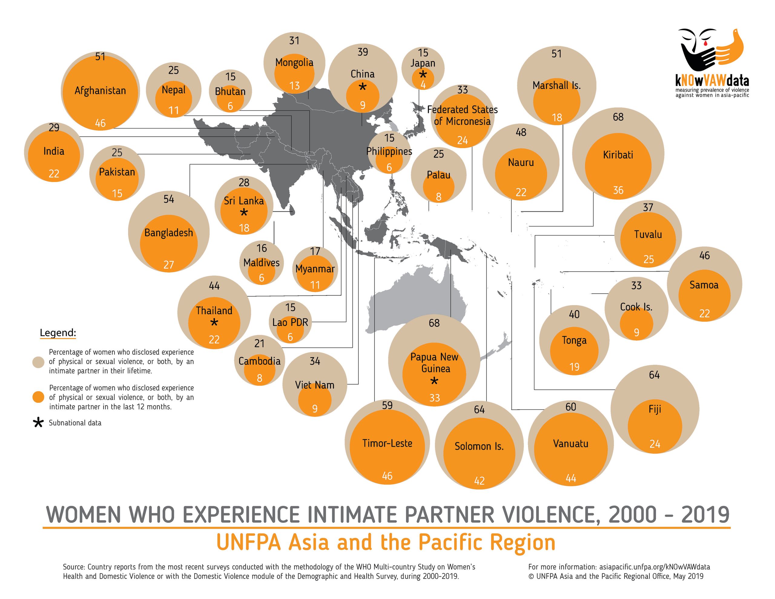 In Asia and the Pacific, violence against women prevalence surveys have been completed in 31 countries. The survey reports show that 15 to 68 percent of women across Asia and the Pacific disclosed experiencing physical and/or sexual violence by an intimate partner.
